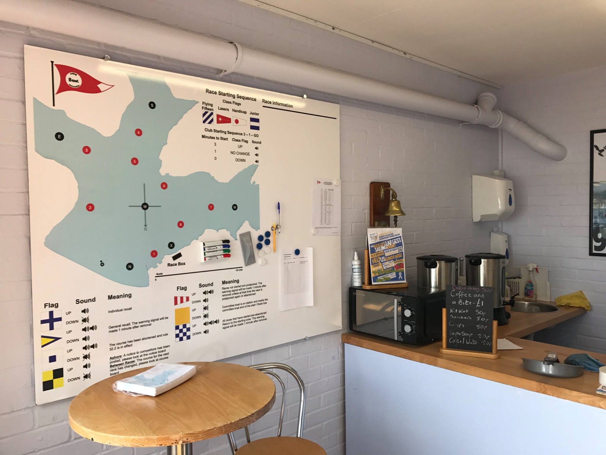 We have a new racing chart of Bewl and a signing-on whiteboard in the Pop Up Café.